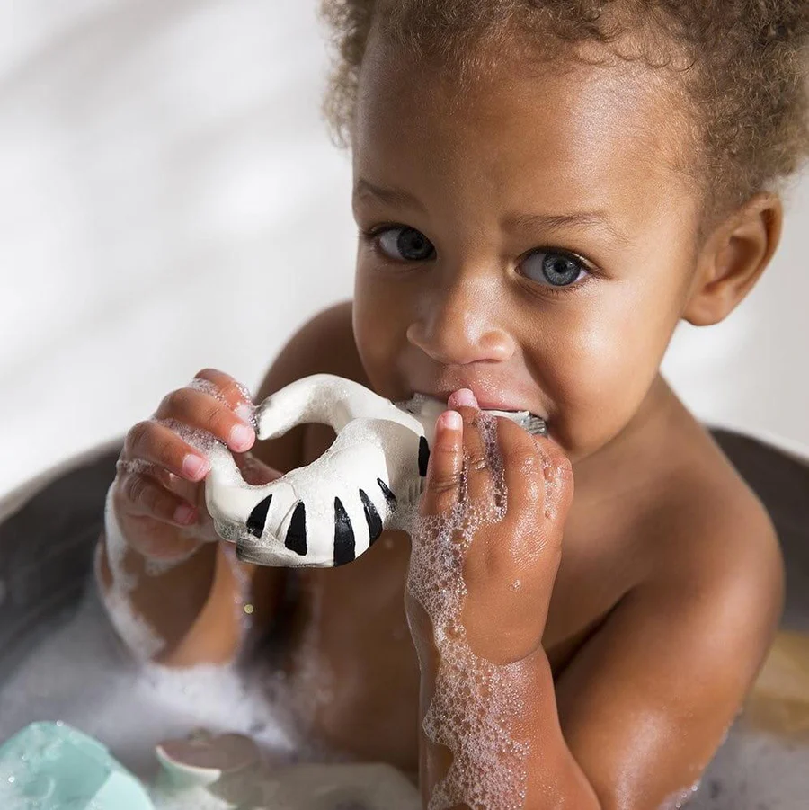 Wsparcie w trakcie ząbkowania, mnóstwo radości w czasie kąpieli, wspaniała zabawa sensoryczna. Jedyna w swoim rodzaju zabawka – gryzak Oli&Carol, wykonana ze 100% naturalnego kauczuku i ręcznie malowana naturalnymi pigmentami z roślin, poleca się jako towarzysz każdego malucha! Zabawka jest miękka i elastyczna, łatwo ją chwycić i ścisnąć małymi rączkami, dlatego idealnie sprawdza się jako gryzak. Kauczuk jest wprost idealny dla niemowlęcych dziąseł, przyjemna w dotyku powierzchnia zabawki delikatnie wymasuje dziąsła i jamę ustną dziecka, przynosząc ulgę podczas ząbkowania i wspierając integrację sensoryczną. Gryzak Oli&Carol nie posiada żadnych otworów, dzięki czemu świetnie sprawdza się także jako zabawka kąpielowa.